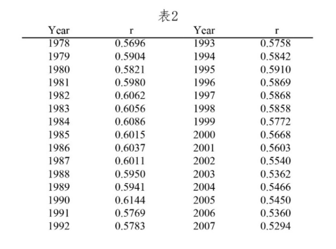 其中,r为劳动收入份额,l为劳动收入,g为按收入法计算的当年GDP,t为间接税。
