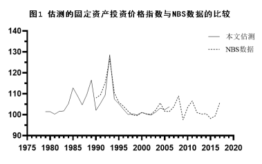 为了验证1978-1989年固定资产投资价格指数的构建是否合理,表1中同样列出了按照这种方法估算的1990-2006年的价格指数,以与NBS公布的价格指数形成对照。由图1可知,估算的价格指数与NBS公布的价格指数在重合年份趋势一致,数值相差较小,构建方法当较合理。1985年和1989年两次较明显的峰值应该并非是估算错误,而恰恰是这两个年份经济过热、通货膨胀在固定资产投资价格上的反映。